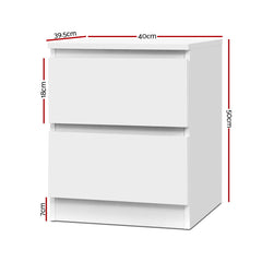 A useful bedside addition, the Artiss Pepe Bedside Table is elegant and simple with a lasting appeal. Made of 15mm thick particle board, the bedside table is sturdy and durable in every way. Two deep drawers sliding on smooth anti-rust runners provide ample storage space. Better still, the handle-free design gives it a modern vibe that stands out from the mundane. Not least, the finish is impeccable and easy to maintain and clean.
